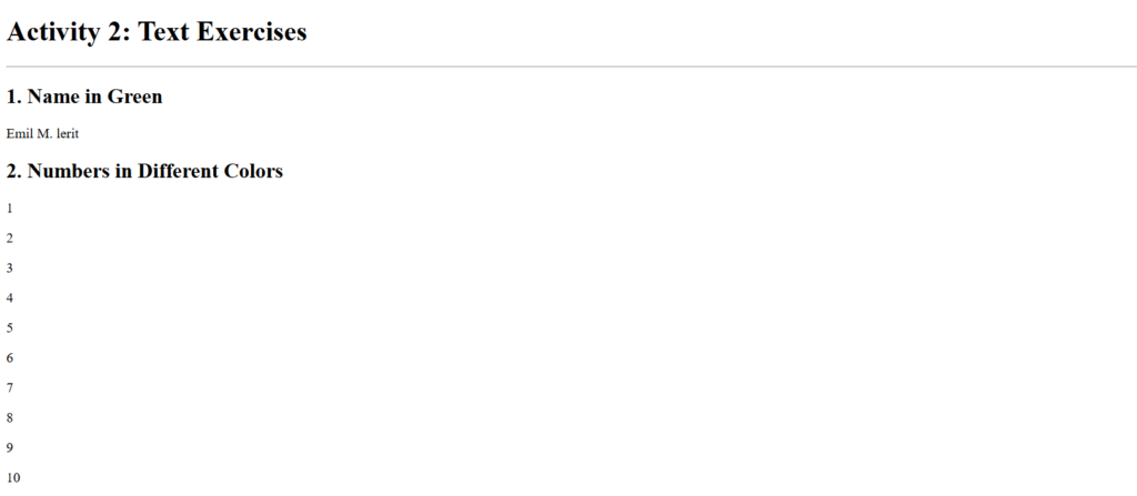 <!-- 2. Print numbers 1–10 in different colors. -->