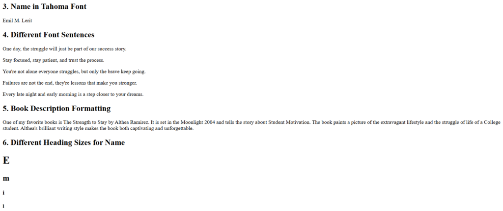 <!-- 4. Print a paragraph with each sentence in a different font. -->